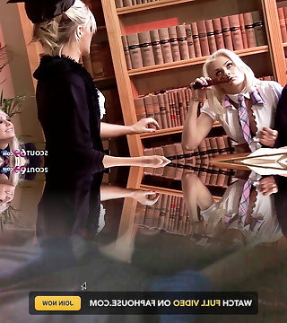 Funny Horny Lesbian Schoolgirl Group Sex in Classroom
