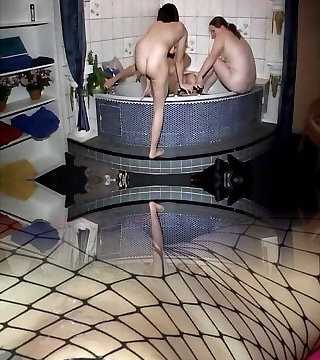 Lesbian lovemaking filmed in the bathroom as killer whores masturbate their pussies with big long sex toys