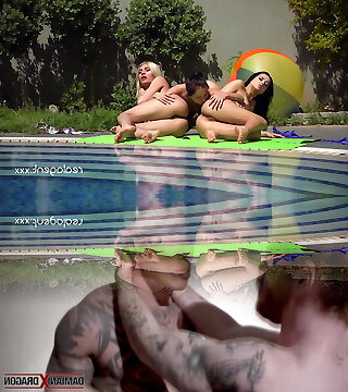 Three stunning Russian lesbians anal masturbation and pussy licking near swimming pool