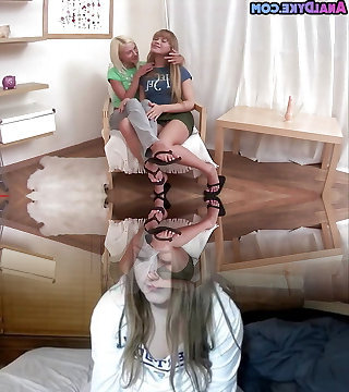 Two girl/girl teens anal toying each other