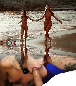 Epic joy on the beach makes both Nicole and Veronica moan