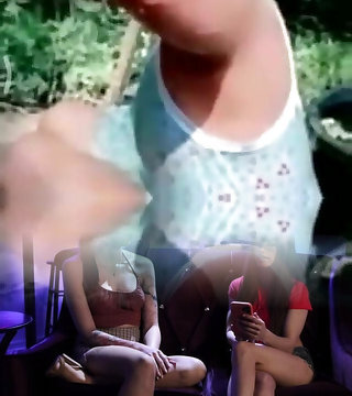 Lesbo enjoys while her girlfriend is licking her twat in the car