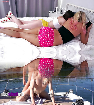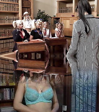 Two 19 Year Older Stepsisters Participate in a Hot Lesbian Lovemaking with Their Lecherous Busty Teacher!