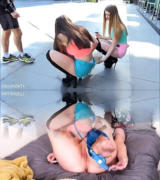 By the pool the beautiful whore friends enjoy sex fucktoys