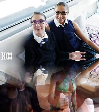 Mature and teen lesbians flashing sexy boobies as foreplay