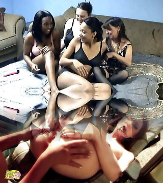 Horny Young Lesbies Group Bang-out Clip