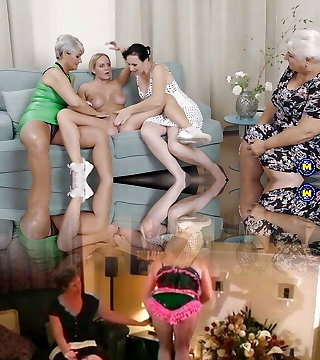 Five old and young lesbians gang sex for Christmas