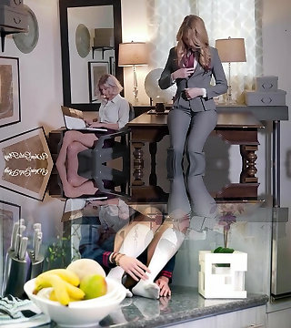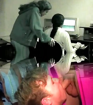 Elder woman seduces young girl at office, super hot!