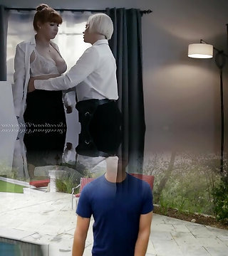 Red hair boss lesbian is disciplining a bad girl-girl employee in a super hot interracial office sex action