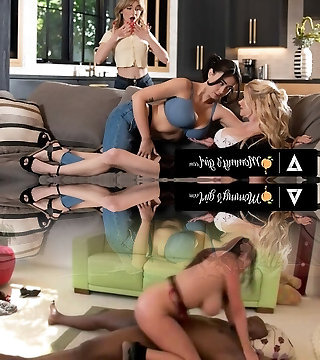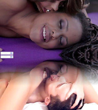 Beautiful interracial girl-on-girl threesome