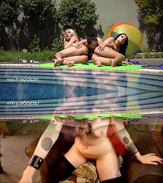 Three stunning Russian lesbians anal masturbation and pussy licking near swimming pool