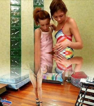 Mischievous lesbians gobble each other's ass and pussy in the kitchen