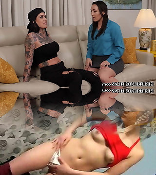 Busty lezdom cougars dominate teen goth closeup