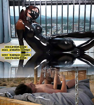 Fejira com Latex clothes girl-girl wrapped all over
