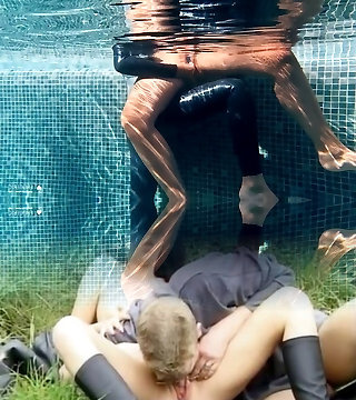 POV with a latex girl-on-girl and a blonde in group sex session