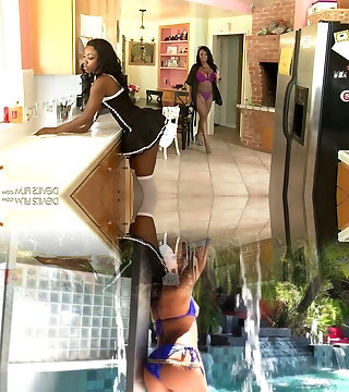Fine smooth skin ebony housemaid looks so inviting for lesbian milf
