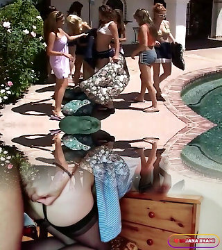 Outdoor Pool Female Threesome