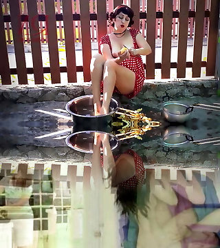 Retro Maid Prepares Potatoes For Dinner. Vintage Performance. Vintage Maid Sans Panties. Onanism Outdoors. Full
