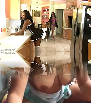 Fine smooth skin ebony housemaid looks so inviting for lesbian milf