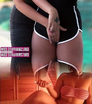 latina brunettes dance and grope each other's pussies by the pool GGmansion