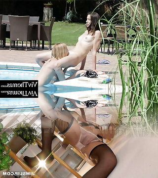 Two hot young lesbians have fun by the pool With Vanessa Cage