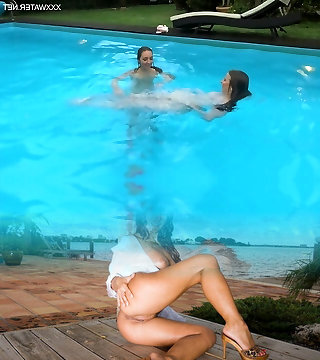 Lezzies take a swim and lick raw cunt to orgasm poolside