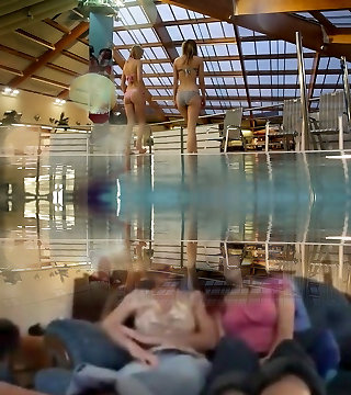 2 white young sexy girls dive in the pool and undress on cam