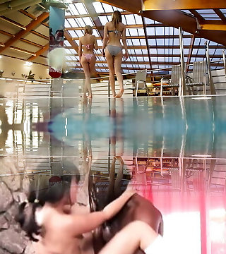 These slender Japanese lezzies caught on hidden camera in the pool