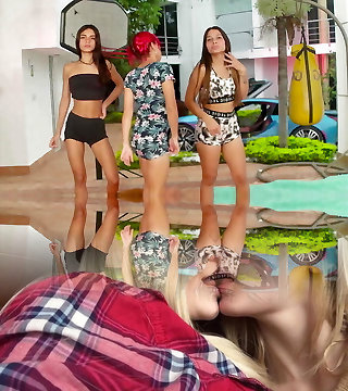 Adorable lesbian blonde in getting freaky munching each others cunts in pov