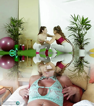 Horny stepmom plays with her stepdaughters pussy. Part Two