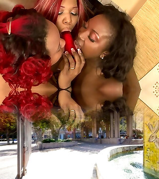 Fat black girl/girl girls play with a vibrator on their beans