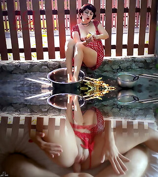 Retro Maid Prepares Potatoes For Dinner. Vintage Performance. Vintage Maid Sans Panties. Onanism Outdoors. Full
